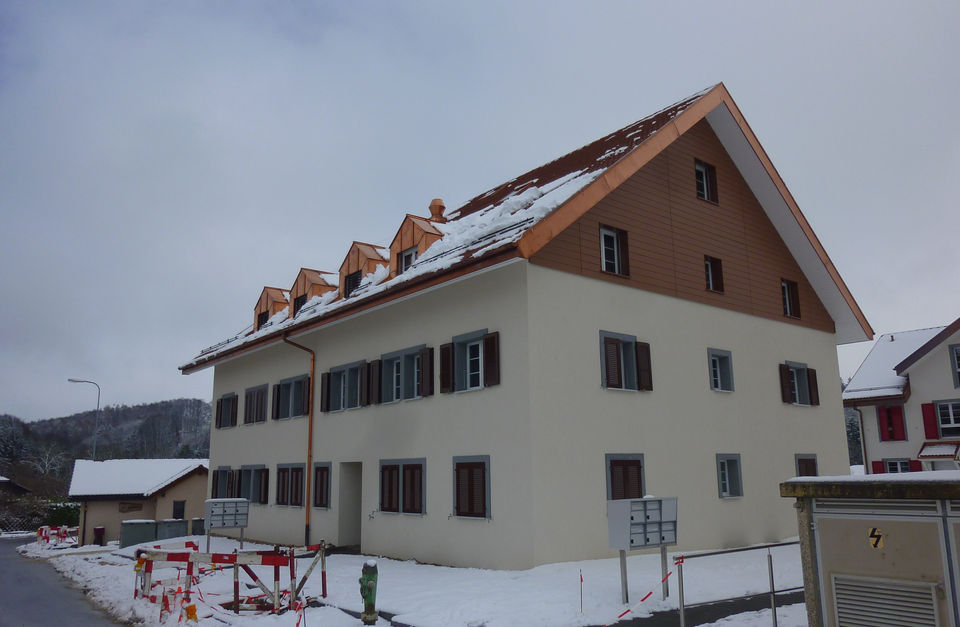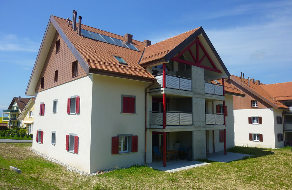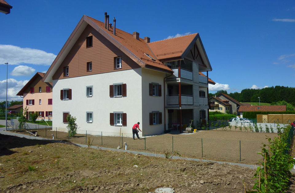 Construction de 2 immeubles, d’un groupe de 3 et d’un groupe de 2 villas-appartements, tous les corps distincts posés sur un garage enterré commun, le tout régit en PPE. Avec chauffage au gaz et panneaux solaires.